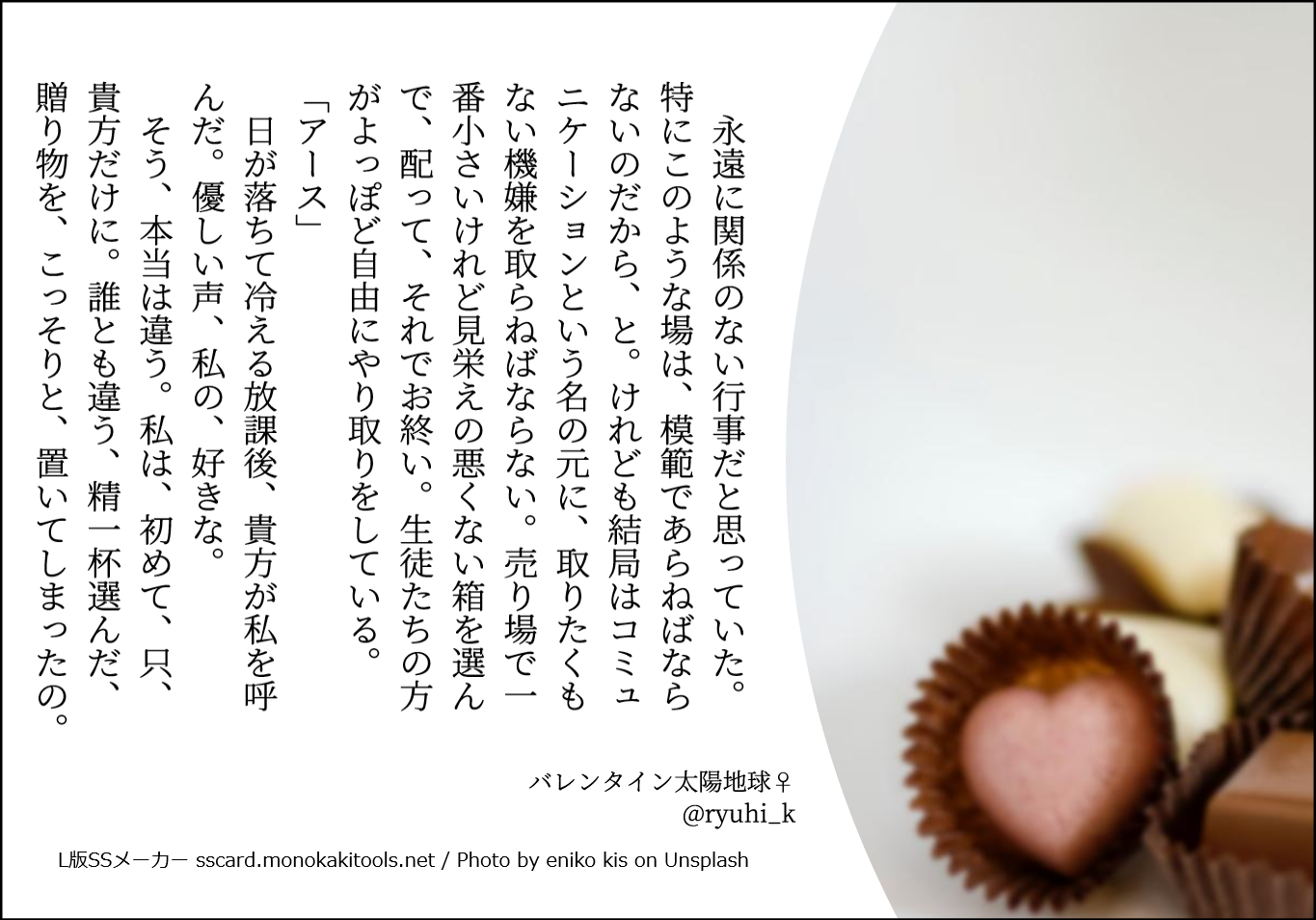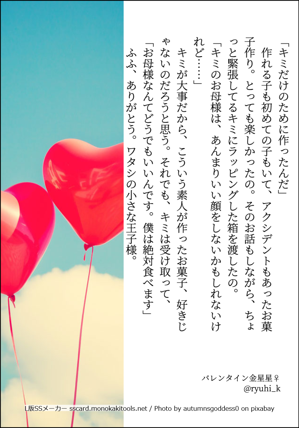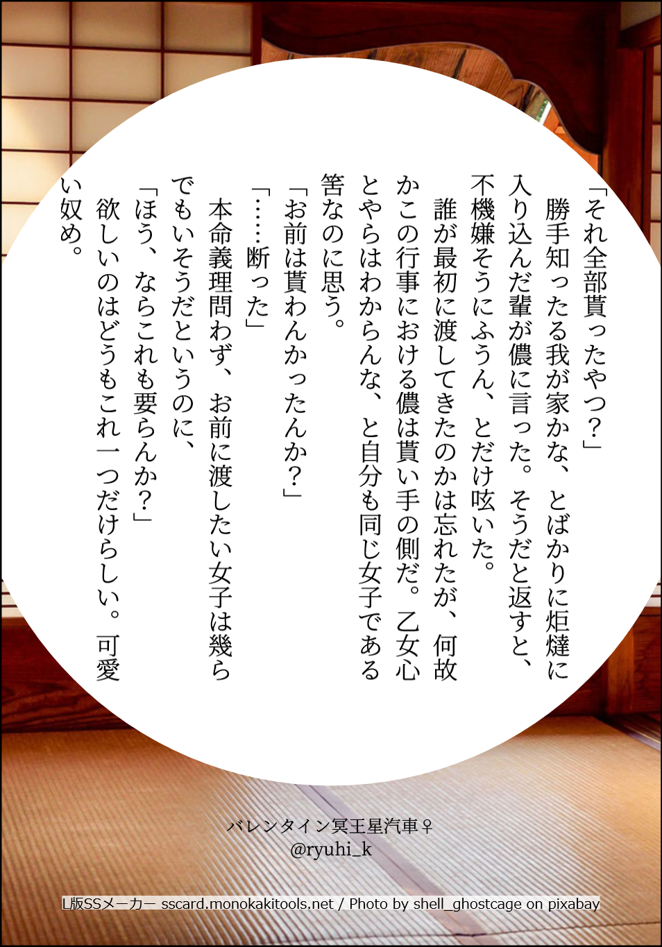 SSメーカーで作成した小ネタ。左から彼女側のNo順です。バレンタイン