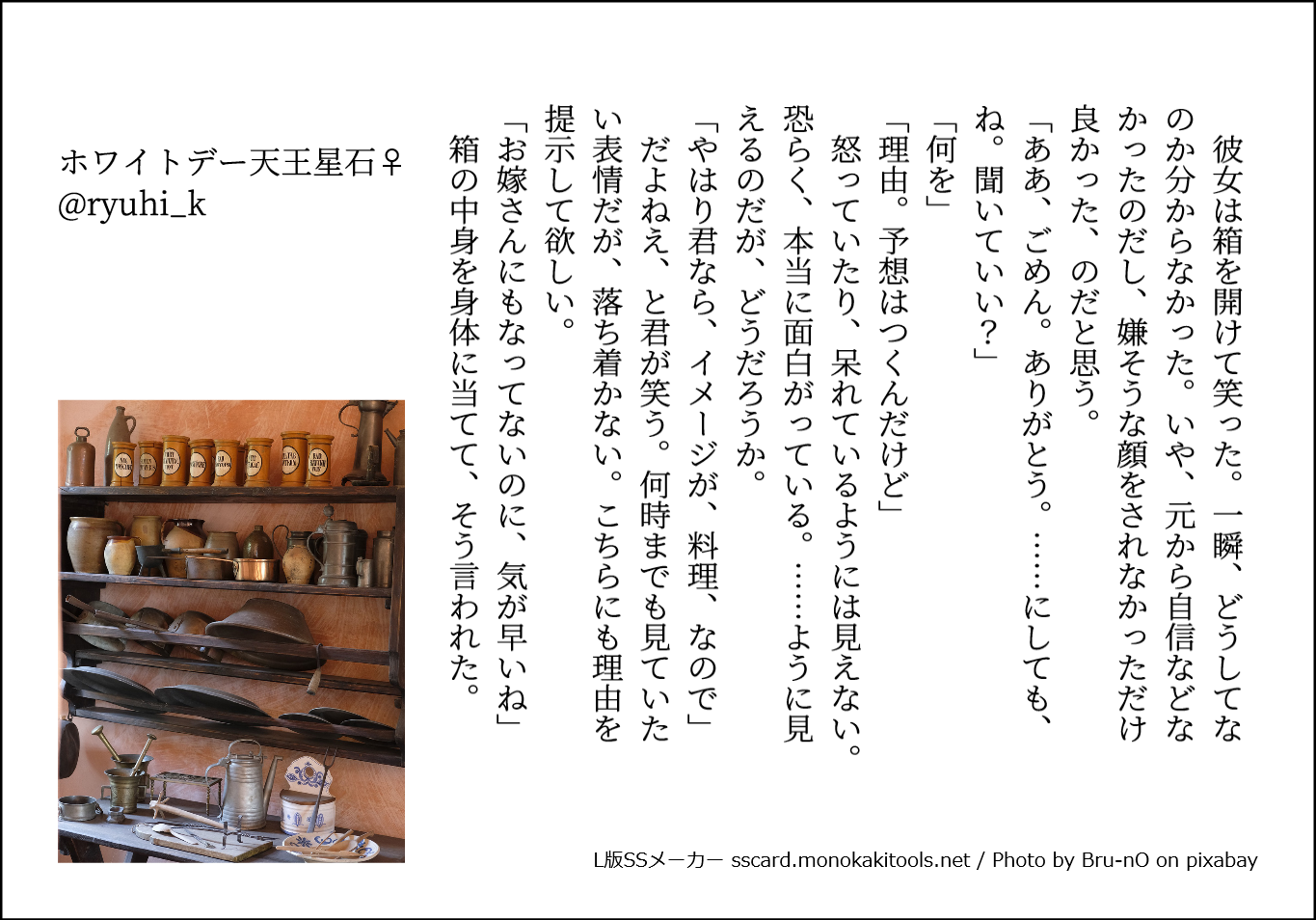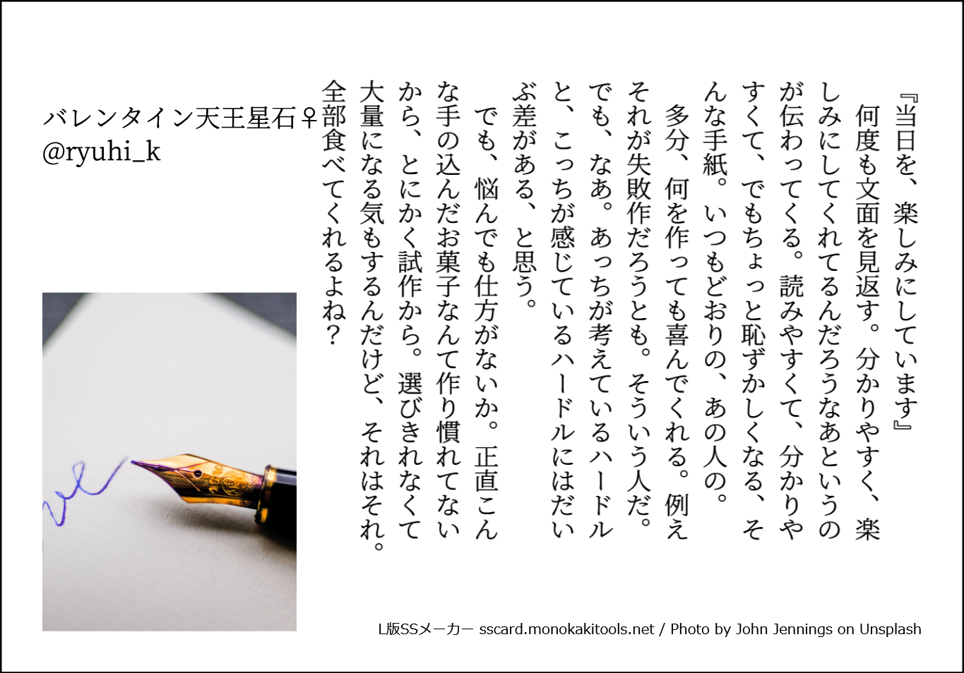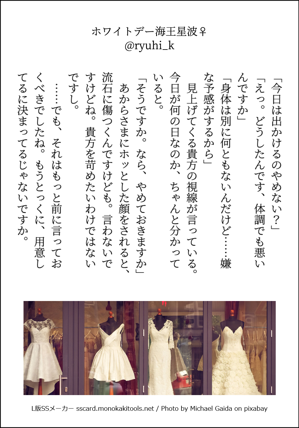 SSメーカーで作成した小ネタ。左から彼女側のNo順です。バレンタイン